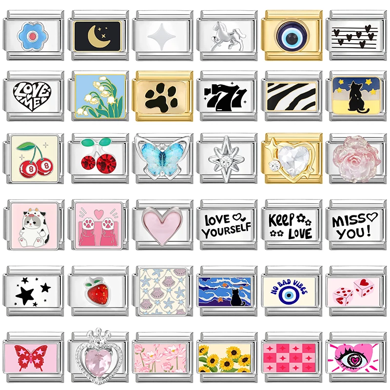 Blue Night Sky Cat Cherry Italian Charms Fit 9mm Stainless S...
