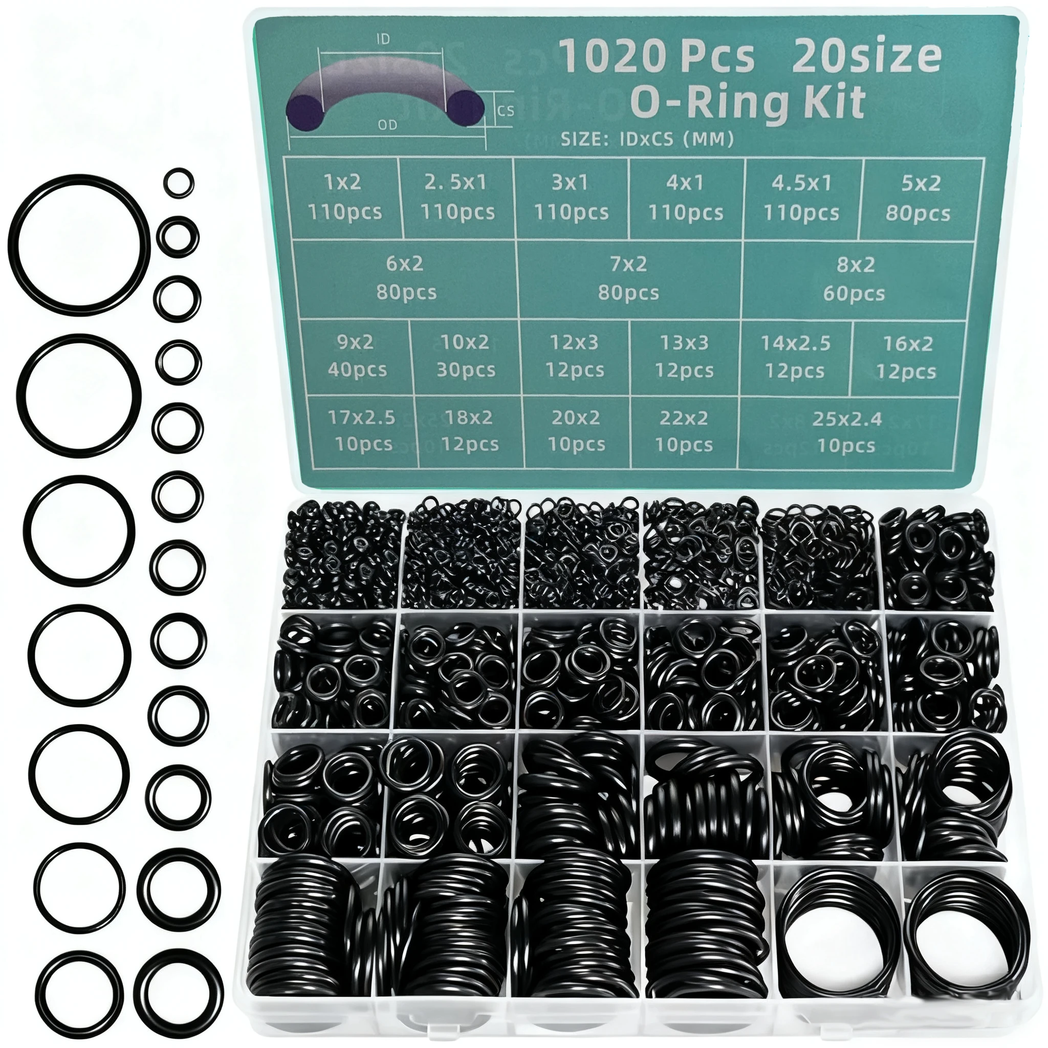 1020pcs Boxed Nitrile O-Ring Repair Kit Sealing Ring Set
